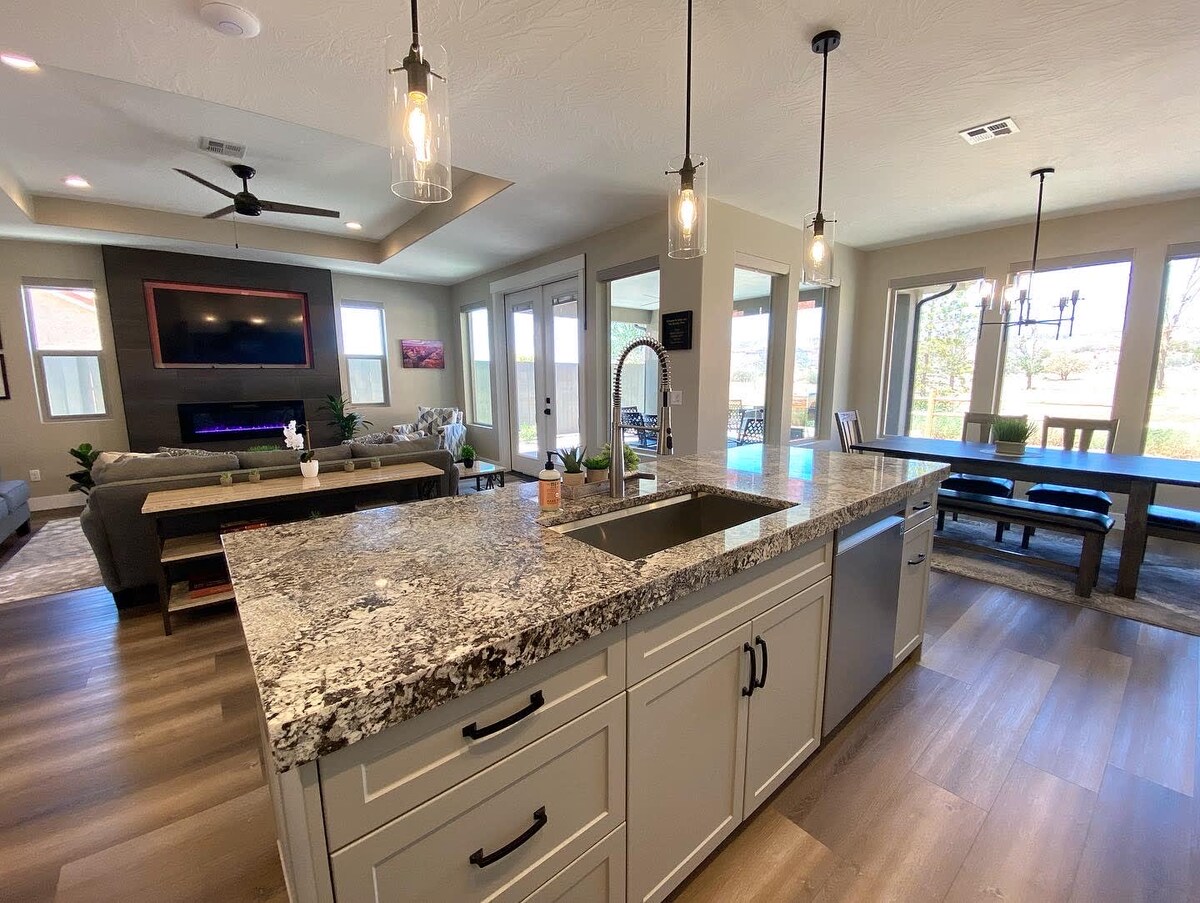 This spacious 4-bedroom, 3-bath retreat sits in the heart of downtown Kanab—just 30 minutes to Zion National Park and within easy reach of Bryce Canyon, Grand Canyon North Rim, Lake Powell, and Coral Pink Sand Dunes. ✔ Walk to restaurants, coffee shops & trails ✔ Fiber WiFi + dedicated workspace ✔ Private backyard with hammock & BBQ ✔ Family-friendly games + dual refrigerators Whether you're road-tripping, hiking Zion, or exploring Utah’s Mighty 5, this is the perfect home base.
