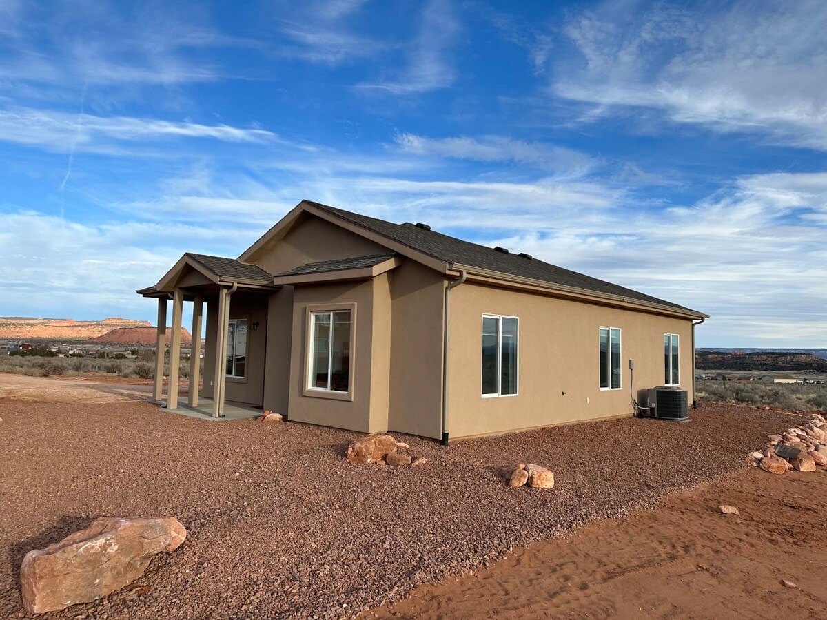 This stunning home in Kanab is the perfect place to escape the hustle & bustle of everyday life! Centrally located to Zion, Bryce & the Grand Canyon. 3 bedrooms and 3 full baths, ideal for families or groups of friends. With an open floor plan, granite countertops, intricate tiling in the bathrooms & state-of-the-art appliances in the kitchen, this home has it all. From the soaking tub inside to the hot tub outside, we've thought of every detail so that you can relax and enjoy your time with us.