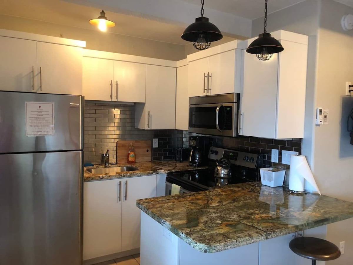 距离主街仅几步之遥/独立入口公寓:加大双人床+单人床+厨房