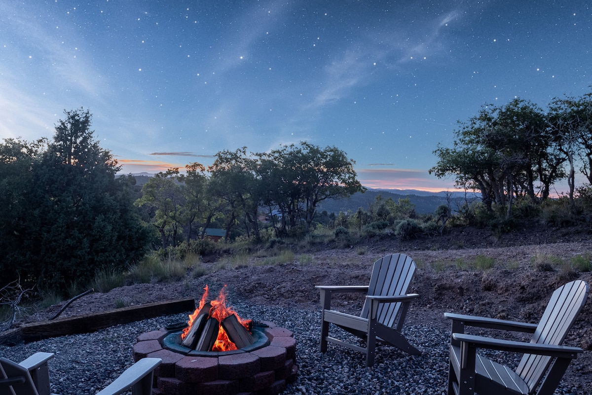 Nestle into Campfire Burrow, a charming lower-unit cabin perfectly positioned between Zion National Park and Bryce Canyon, just 1.5 miles off US-89 along a peaceful dirt road. Ideal for 2 but accommodating up to 3, this cozy getaway features a king bed, an optional cot, a modern bathroom, a compact kitchen, and a private cowboy hot tub. Take in stunning valley views, enjoy Starlink Wi-Fi, a smart TV, and a work desk, all while keeping an eye out for wildlife and rumored UFO sightings.