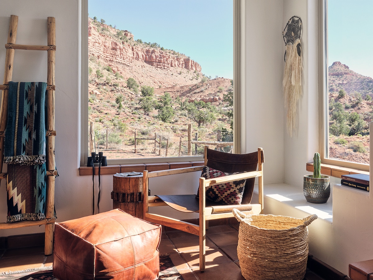 Quiet Shelters Adobe dwelling is set on 2.4 acres within the desert landscape. This intimate one-bedroom, one-bath space is thoughtfully made with natural materials and Southwest inspiration. The stay invites a slower rhythm and deeper presence, offering a grounded way of traveling. With views of red rock cliffs, daily noise falls away, making room for rest, reflection, and connection to the land and each other. Best suited for guests who value design, intention, and attentive hospitality.