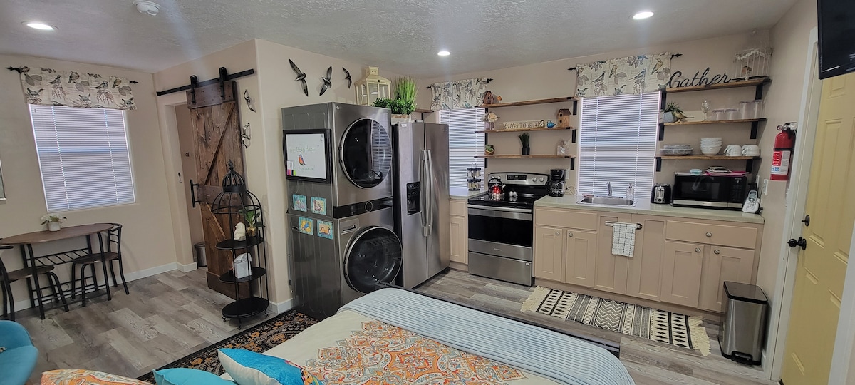 Be isolated and not worry about large crowds and close neighbors. Entire house & yard to yourself! Everything you need to visit the local National Parks or other attractions. The building was used for a amazon parrot flight house for a local sanctuary. They were in the process of demoing the old building. We saved it and gave it a new purpose! The lot it sits on had a birdhouse where a pair of birds would raise their young every year. Come escape to this breath taking tiny house!