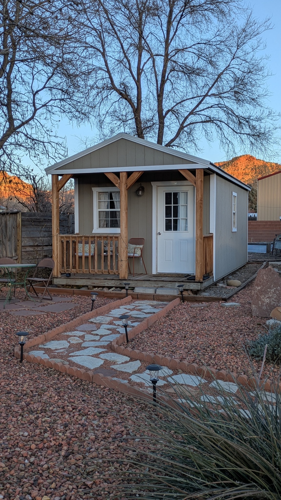 The features of a Boundary cabin are uncommonly luxurious for rustic lodging. 400 sq ft has never been more comfortable. Full Bathroom, heat and cooling, community fire pit, 1 queen bed, and a loft for 1 adult or two small children, and all of this less than a mile away from Zion National Park! Please note that the loft does not have bedding. It only has a mat to sleep on. You'll need to bring your own bedding for the loft area.
