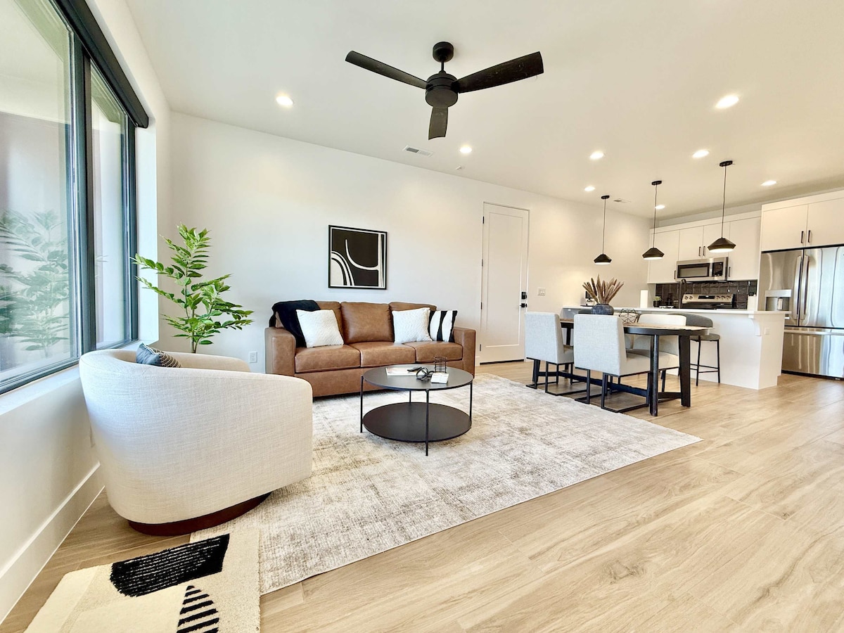 Experience Southern Utah in style at High Desert Fortune Cat, a bright and modern 3‑bedroom, 2.5‑bath townhome just steps from Downtown Kanab—your ideal base for exploring Zion, Bryce Canyon, Coral Pink Sand Dunes, and Lake Powell. Comfortably sleeps 8 with king, queen, and twin beds, open‑plan living, a fully equipped kitchen, fenced yard with grill, washer/dryer, and a two‑car garage. Ideal for families or groups seeking adventure and relaxation.