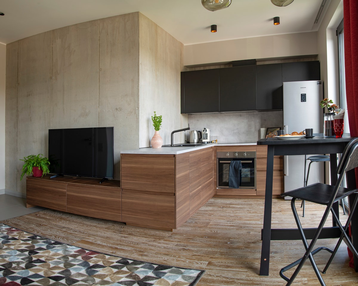 Kick back and relax in this calm, neat space in the city heart, next to Art Nouveau gems and surrounded with parks, top restaurants, bars of any kind and shopping centers - you will get all needed for vacation or staying for business. Apartments were built in April 2023 with high quality materials and wise design. Owner constantly invests her own soul in highest level of clearness, comfort and safety. Fully contactless checkin & free parking in nearest commercial parking will be a small bonus.