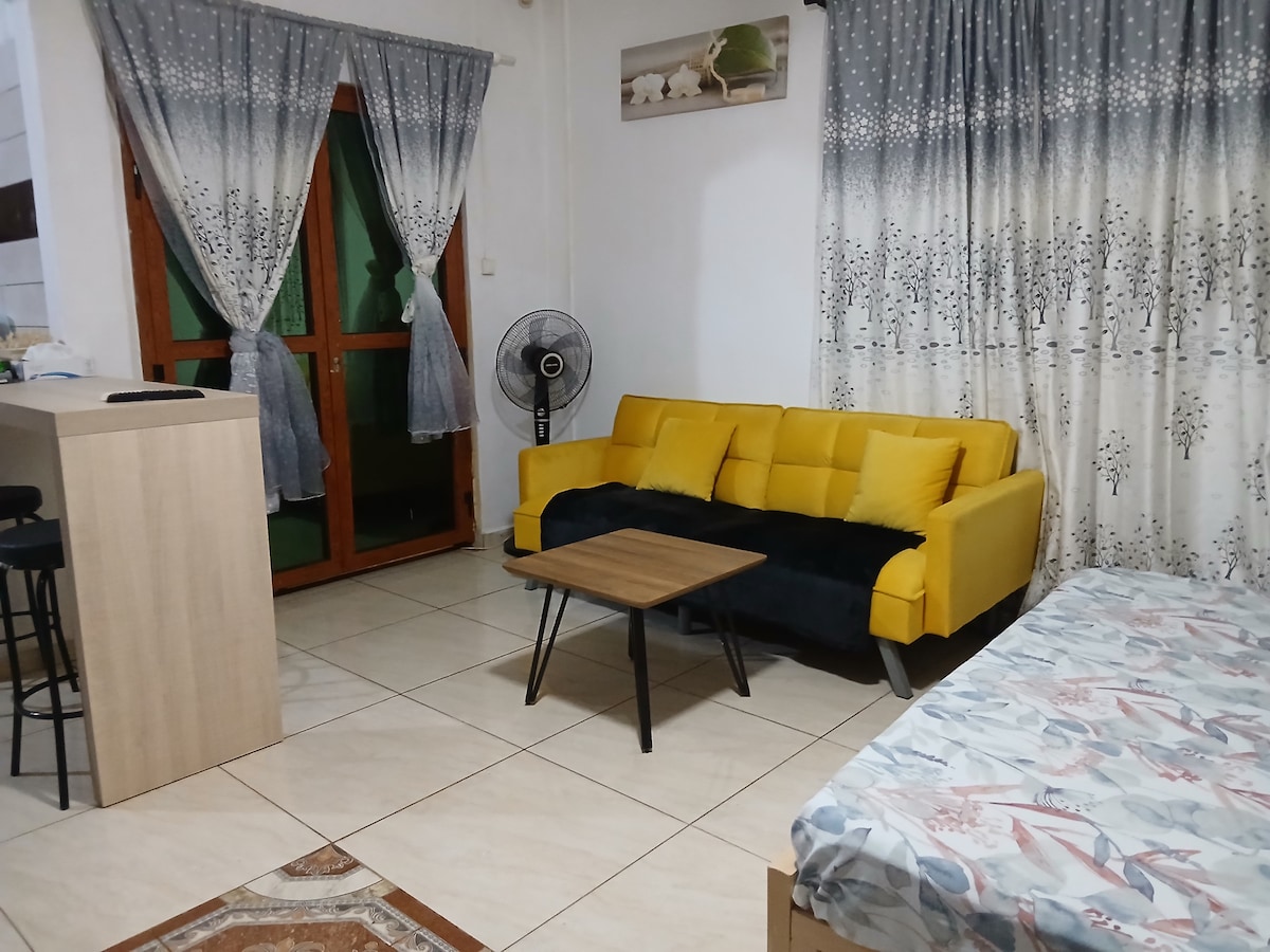 Studio neuve, et élégant au centre de sada. canapé angle convertible en lit, décoration soigné. matelas disponible (si le canapé ne convient pas). A 2 min à pied des commerces, banque et la plage de sada idéal pour admirer le soleil couchant derrière son îlot en forme de tortue. Les plages du sud (tahiti plage-5min) (mzouzia, 3baobab,-20min) (Ngouja 25min) en voiture. ou plutôt randonneur le Mont Bénara à 10min, Mont Choungui 25min en voiture. INTERDICTION DE FUMER dans le logement svp.