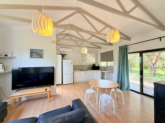 Literally a "stones throw" from the crystal blue waters of famous Stokes Bay winning the title of best beach in Australia in 2023. You will see an abundance of wildlife and most definitely the renowned kangaroo. Family-friendly or a gorgeous couples retreat! Everything you need for a relaxing stay by the beach. Swim, kayak or SUP in the sheltered waters a few steps from your front door or play on the sand. Stoke the BBQ & relax by the outdoor fire whilst watching the waves roll in.