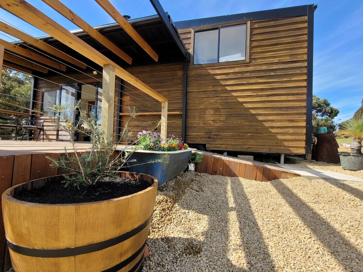 Welcome to a hidden gem discreetly and privately located on the edge of the wilderness of Deep Creek National Park. Enjoy the serenity and stunning views across the water to Kangaroo Island from your own scenic deck, whilst living large in a beautifully designed and built tiny house. Deep Creek Tiny House is located on the traditional land of the Kaurna/Ngarrindjeri people, adjacent to the stunning Deep Creek National Park, on the southern-most tip of the Fleurieu Peninsula.