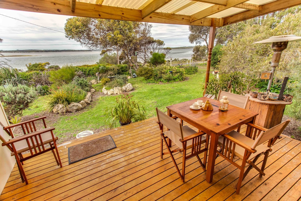 Pelican cottage is located at Muston on the ocean water front of Pelican Lagoon, a Marine Park facing East/North. It is 4kms to American River and 5 kms to Pennington beach. The charming, historic cottage has a front bedroom overlooking Pelican Lagoon where you will enjoy the views over our native garden and onto the water second bedroom views to the garden. Cook in the well equipped kitchen. There is a Separate bathroom. Sit on the deck and view wildlife, sunrises, moon rises and relax.