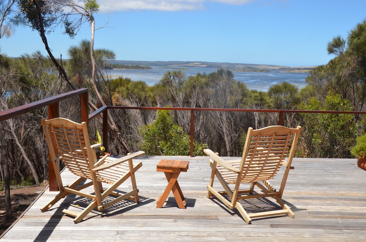 See our New Sister Property: https://www.airbnb.com.au/rooms/951596004600270574? Tucked away on the hill , The Cape, boasts stunning, panoramic views of Emu Bay. This stylish home has 4 bedrooms with luxury linen, 2 bathrooms & a gorgeous living area flowing onto a large deck. The Capes' sweeping views of the bay and beyond is a haven for those seeking peace & quiet with a splash of ocean air. Minimal environmental impact : Solar panels & collection of rainwater.