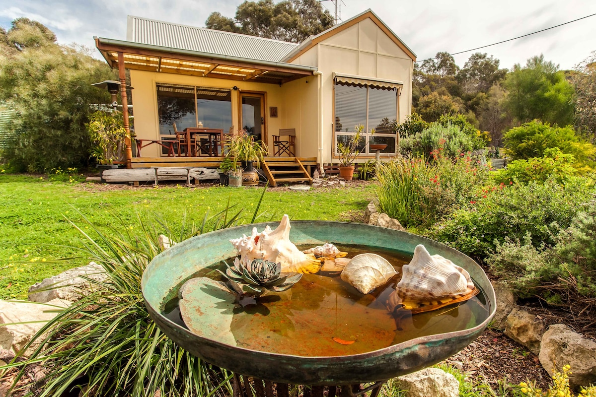 Pelican cottage is located at Muston on the ocean water front of Pelican Lagoon, a Marine Park facing East/North. It is 4kms to American River and 5 kms to Pennington beach. The charming, historic cottage has a front bedroom overlooking Pelican Lagoon where you will enjoy the views over our native garden and onto the water second bedroom views to the garden. Cook in the well equipped kitchen. There is a Separate bathroom. Sit on the deck and view wildlife, sunrises, moon rises and relax.
