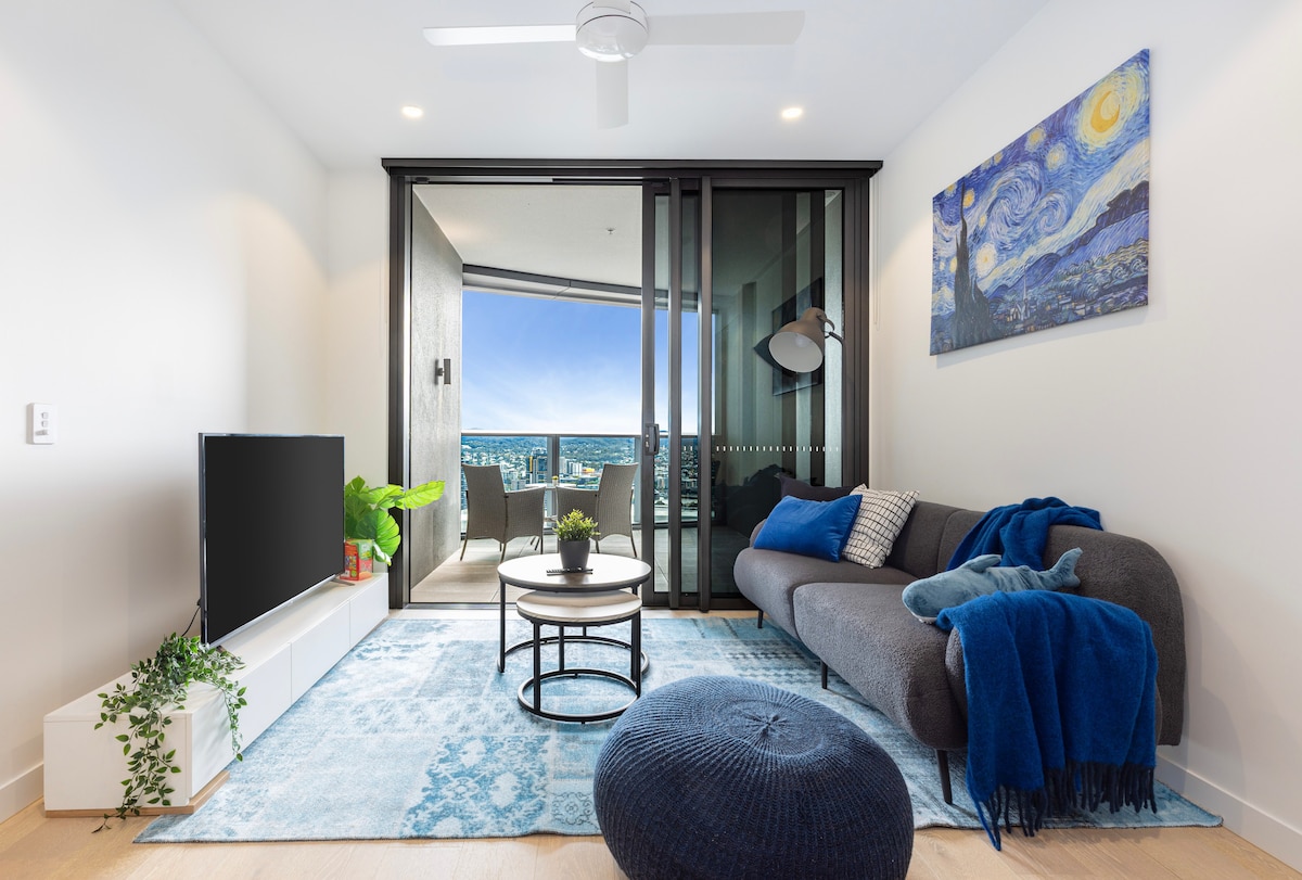 Soar above the city and unwind in serene, sky-high luxury at the New Queen’s Wharf. Perched on the 59th floor, this beautifully brand new curated apartment combines calming nature-inspired interiors with jaw-dropping, uninterrupted views of Brisbane’s skyline, river, and mountains. Step into a tranquil space where soft earthy tones, natural textures, and luxe finishes create the perfect retreat—whether you’re here for business, a romantic escape, or a peaceful getaway in the heart of the city.