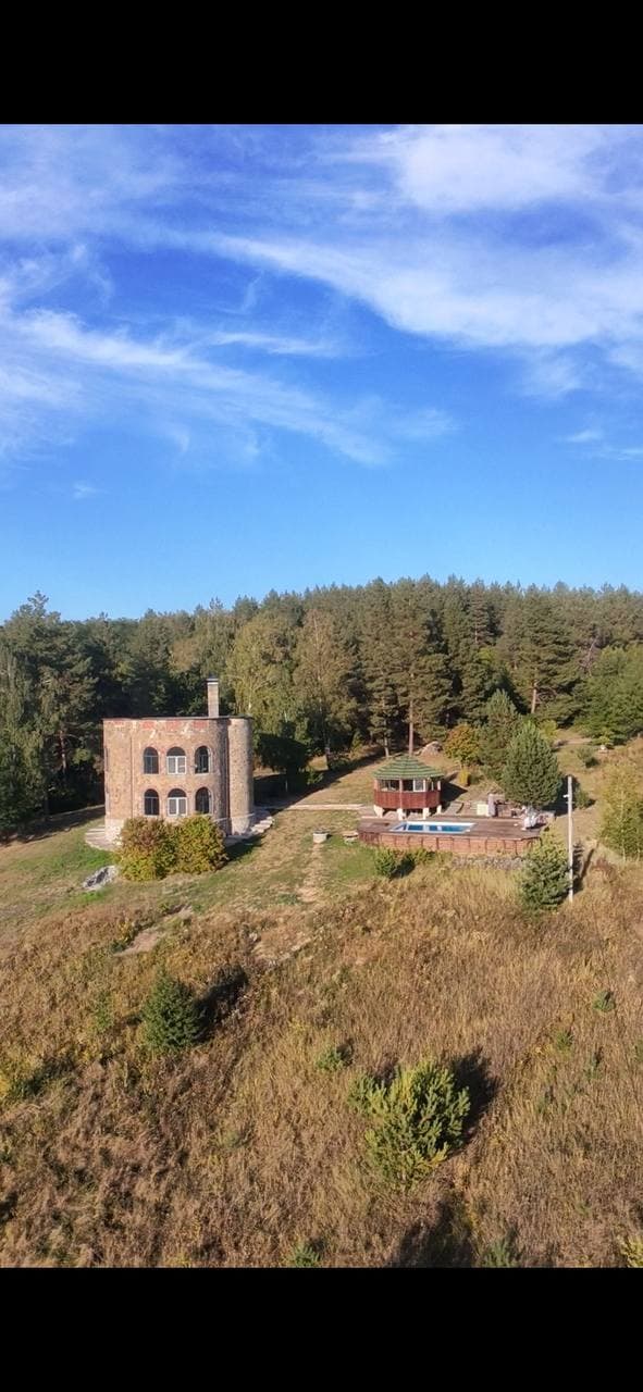 Уявіть собі ранок серед шелесту лісу, співу пташок і аромату свіжозвареної кави на терасі з видом на мальовничі пагорби. . З одного боку — тихий ліс, з іншого — безкрайній луг, де пасуться ягнята. Вілла розташована в повному усамітненні — жодного міського шуму, лише ви, природа і спокій. На подвір’ї — чан та бассейн із теплою водою під відкритим небом і панорамні краєвиди. Вечори — біля вогнища, під зоряним небом! Ідеально підходить для сімей з дітьми або романтичної втечі на двох.
