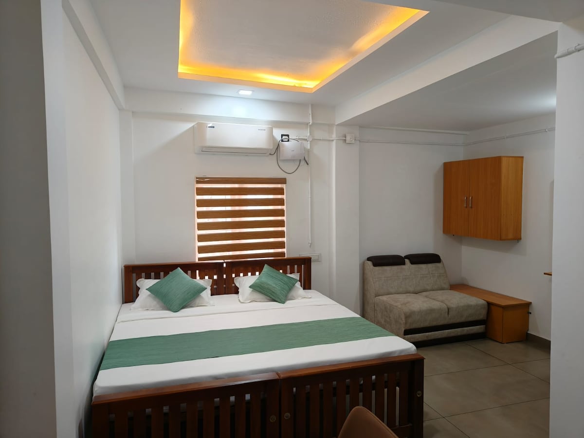 Experience a stylish stay in our Designer Studio Room at a boutique hotel in Munnar. Enjoy modern interiors, premium comfort, and a peaceful nature ambiance—perfect for couples and leisure travellers. Wake up to fresh mountain air and relax in a cozy, well-designed space equipped with all essential amenities. Amenities: • Designer Studio Room • Air Conditioning • Smart TV • Toiletries • Mini Fridge • Locker • Restaurant • Coffee Bar • Elevator Access Luxury Boutique Stay with Modern Comforts