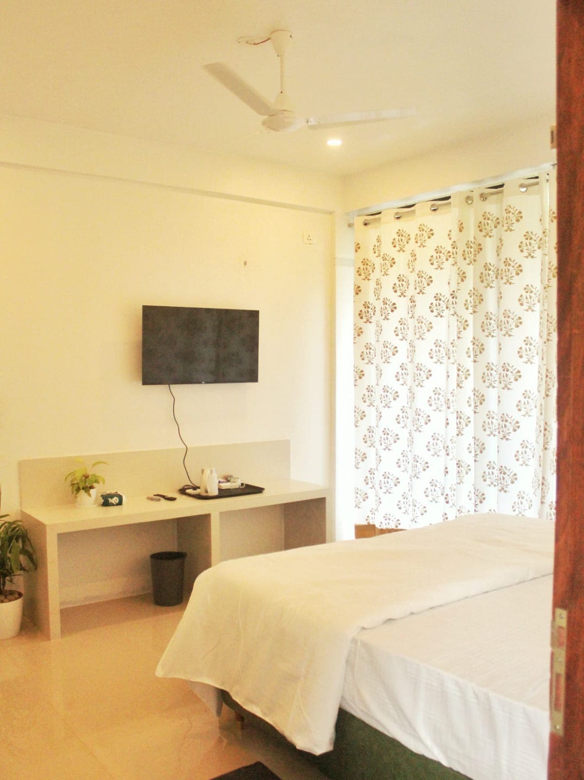 Forget your worries in this spacious and serene space. One bed room with attached bath room in a premium property with all common amenities This place is well serviced by Swiggy with over 20 restaurants incl KFC Chiking king Pizza Hut and may local restaurants with wide range of options