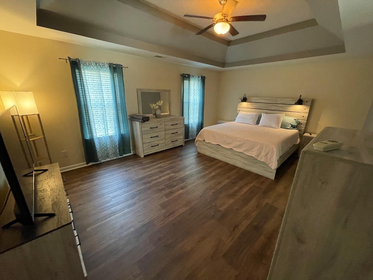 Stretch out and relax in our spacious, 3400 sq ft renovated home. Take a dip in the community pool, play corn hole in the huge backyard, beat grandmom's undefeated Connect4 title, or lounge by the fireplace with a good book. Recharge at the coffee bar or walk around our quiet, friendly neighborhood. Whip up a gourmet meal in our fully stocked kitchen or take a short drive to a plethora of restaurants. End your day with a soothing bubble bath and a restful night on our memory foam mattresses.