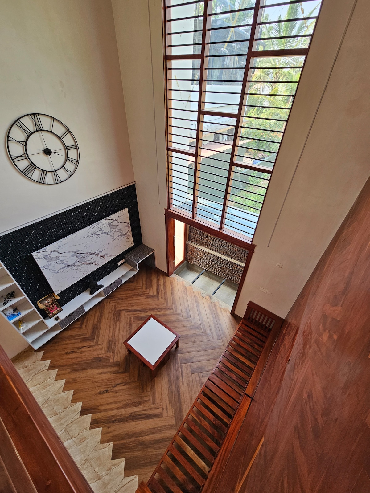 4BHK (AC) luxury villa at a posh location in TVM city centre. Museum view from roof top garden and gym. Main road access with high-speed internet. Sound proof villa with 5 attached toilets. On booking of 2 guests will get 1 room, 4 guests will get 2 rooms, 6 guests will get 3 rooms, and only 8 or more guests will get 4 rooms entire villa. Covered parking for one car and 2 bikes. Modular kitchen with latest amenity Pressurized hot water 24/7 55 " TV Netflix Prime /HD cable with power back up.