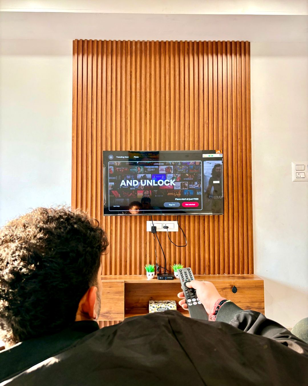 Kick back and relax in this calm, stylish space. Wifi 200mbps speed Netflix and Prime for chill Massive 65 inch tv Security cameras 24/7 1 king size double bed for 2 guests Floor bedding with extra blanket and pillow for 3rd and 4th guest. All utilities available for self cooking. Private independent space with free parking premises.