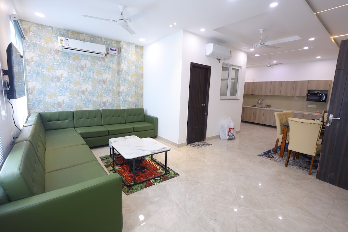 spacious rooms and modern amenities within one of Kanpur's most secure and upscale societies, Gopala Tower:Spacious Living: The property features two permanent bedrooms, a large living room, and a dining area—ideal for families or small groups. Guest Guidelines: Valid ID Requirement: All guests must present a valid government-issued ID. No Alcohol, Smoking, or Noise: Damage to Property: Any damage to the property should be reported immediately, and reimbursement will be required.