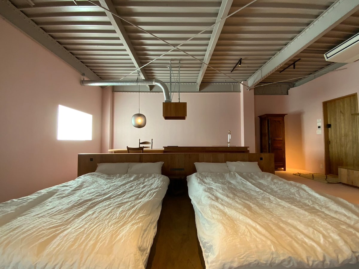 The building of uno nido was originally designed and built as a cosmetic store. This 60-year-old reinforced concrete building had long been kept as if time was completely stopped inside. With only minimal renovation work, we managed to let in new breeze into this old building by turning it into a new hotel. ※ If the room at uno nido is not available, please check "uno nido o'ku". ※ uno nido is available for guests over 13 years old ※ The entire building is non-smoking (balcony non-smoking)