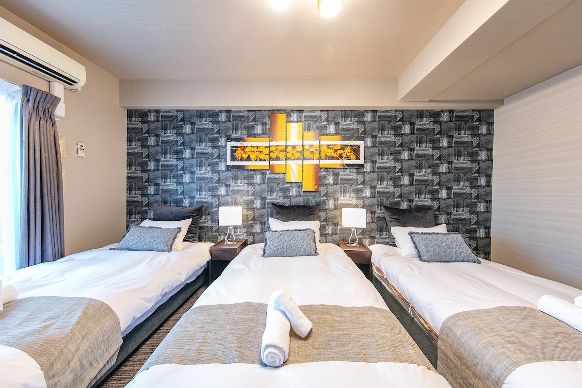A modern-style apartment / apartment‑hotel featuring self‑contained units with private kitchens, living areas, bathrooms, and balconies, ideal for both short and longer stays. Nestled in Naniwa‑ku’s vibrant Minami/Namba district, it’s within a 3-5 mins walk to Imamiyaebisu and Daikokucho stations (Midosuji, Sakaisuji, Yotsubashi & Nankai Kōya lines). Guests can reach Namba and Shinsaibashi areas in just minutes, with excellent connectivity via subway/train.