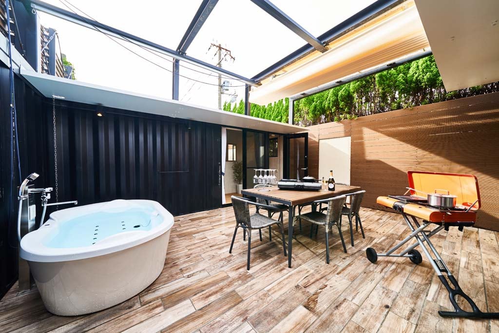 屋顶露台 可享受私人温泉的露天浴池集装箱酒店