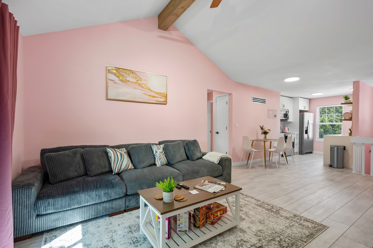 粉红色房间,带热水浴缸、游戏室和疯狂的双层床!