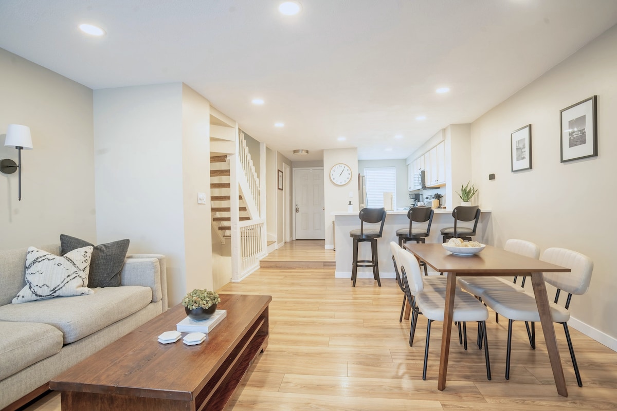 Unwind at this art-filled, newly renovated townhouse minutes from restaurants, shopping and entertainment. Two king bedrooms with smart TVs make for a great getaway for two couples or a small family. Enjoy the fully-equipped kitchen or grill on the private patio. The basement serves as a lounge and office space and is equipped with a TV, sofa, desk, laundry room and full bath. Walk to the community pool or hit the courts for a game of basketball, tennis, or pickleball with provided equipment.