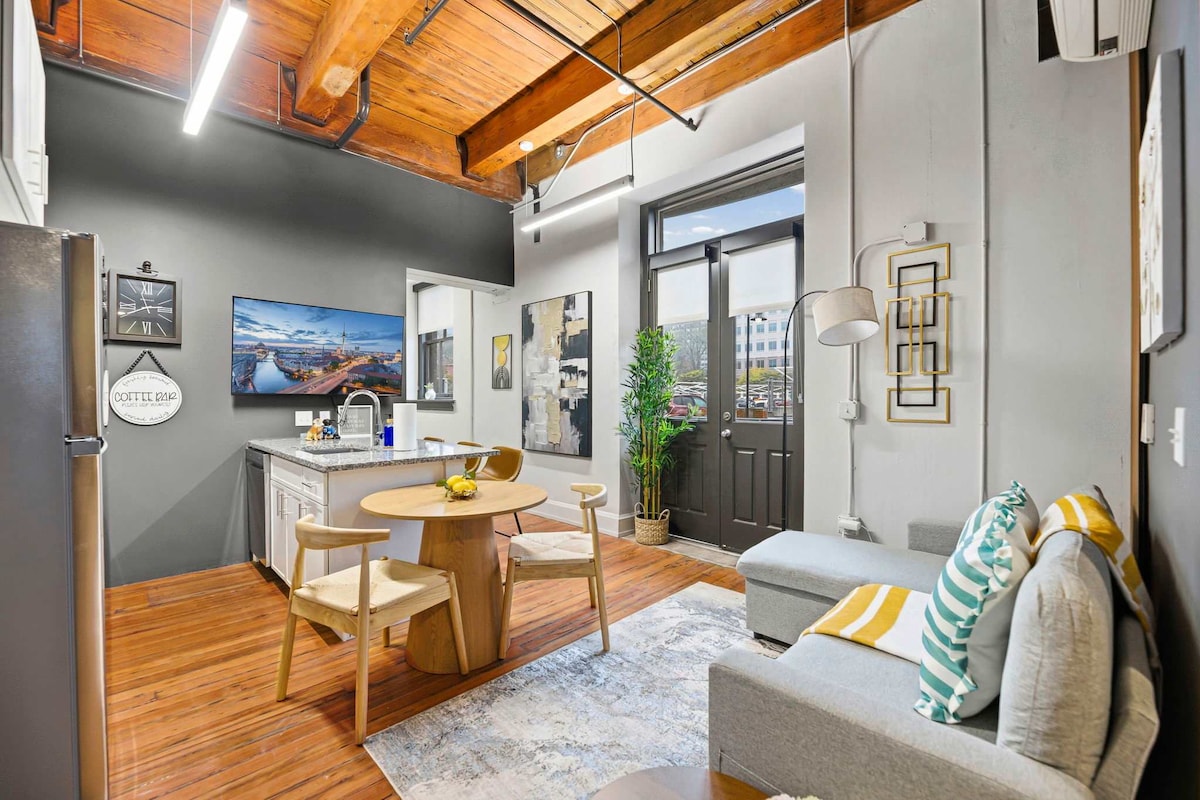 Welcome to the Sunflower Suite in Kansas City’s 'Little Italy' A stylish loft with skyline views just minutes from Downtown KC! - WALK to local restaurants & Bars - SCOOTER to a concert at T-mobile Center - UBER to catch a Chiefs or Royals game 5min walk to Gorozzos (KC's best Italian) 3min walk to Happy Gillis (KCs best brunch) 3 min drive to the City Market Amenities: Laundry In Unit Natural Light (Large Windows) Fast Wifi King Bed Rain Shower Games Coffee/Tea station Kitchenette