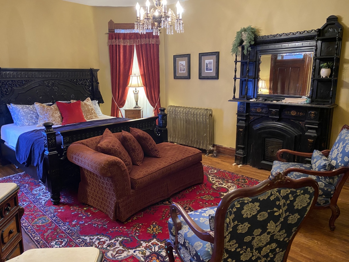 Located on our second story, this spacious updated Colonial-styled one-bedroom suite adjoins a plush sitting room off the Grand Hall. The suite features a king bed, a master bathroom with an antique soaker tub and walk-in shower, numerous amenities and stunning views. And your stay includes a delicious homemade breakfast. We take great care to make you stay special and relaxing.