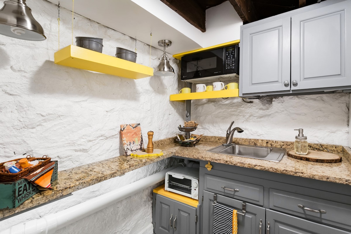 Pass through the private entrance and into a lodge-like hideaway modeled on Ralph Lauren's famous ranch. Rich leather and warm wood finishing deliver a rustic-but-modern feeling. Watch cable TV or use your favorite streaming app via an Amazon Firestick from the comfort of the electric reclining luxurious bed. Guest will have all they need for a short weekend visit or an extended stay with a dedicated bathroom, their own fully functional kitchenette (with the exception of an oven) and a quaint area providing a worktop for eating or working. The guests will have exclusive access to the entire private suite during their stay. The host’s private residence is located just above the Airbnb unit and encompasses the remainder of the home. Guest are asked to remember that the yard, patio, porch, upper levels of the home and the locked storage portion of the lower level just adjacent to the Airbnb unit is unavailable to guests. The host will never enter the rented unit without gaining prior permission from the guest or in the case of a life-threatening emergency or a disaster related to the home. Guests can enjoy an autonomous stay with an optional self check in through a separate, keyless entry to the private unit. Although it allows for a carefree, independent stay, guests can rest well knowing their hosts are close by. In fact, they live in the same home, just above where the unit is located making it easy to get answers or receive assistance during their stay. The eclectic mix of grand homes in this historic Hyde Park neighborhood has an energized spirit that conveniently brings guests to the pulse of the City's heartbeat. Travel under 2 miles to sports arenas and the vibrant Power and Light District. For those guests that have a car, there is off street, well lit, covered parking just a few steps from the entrance. If you require alternate transportation, Kansas City has several choices for getting around the city. Uber, Lyft and Z-trip (cabs) - These are smart phone app based scheduling options. Rides can be requested using their smart phone apps that are downloaded from your phones app store. City Buses - The Airbnb is located on the city bus route and can be accessed from more than 5 bus stop within a 3 block radius of the rental. These give access to all routes throughout the city. Bus runs 7 days a week but frequency and schedules vary. Generally they are available Mon-Fri, 5 am to midnight and Sat-Sun, 9 am to 2 am but should be verified on the RIDEKC website. Streetcar - The Kansas City Street car is free and runs every 15 minutes between Crown Center and the River Market. The details can be found on the RideKC website. Ride share bikes - Public bike rental stations are available throughout the city. Information found at the KCbcycle website. Ride share scooters - For shorter distances or a fun way of sight seeing in the city; two ride share scooter options are available: Lime and Bird . To quickly get started and get further details, search for Bird or Lime apps on your smart phone in your providers app store. When guest arrive, they should pull in and proceed up through the stone walls on either side to the top to park under the covered carport parking space nestled within the wooden fence. The Airbnb unit has its own private entrance about half way down the driveway on the side of the house. Guest will enter using the keyless entry code provided to them in the check in procedures. After proceeding down to the lower level, guests will have exclusive access to the entire private suite during their stay. The property shares a common driveway with the home next door. Although they understand Airbnb guests will be staying in the unit, we ask that you be courteous and quiet when outside, parking or transferring luggage to the unit. This is especially important in the evening hours or overnight. Justin and Aaron ask that you contact us upon arrival to let us know you’ve made it safely and without issue. At that time, they can answer any questions you have, give you a brief introduction to the space or you may choose to independently explore and discover the space on your own. Since we live just above the unit, guest should feel free to call or text should they need anything during their visit. Housekeeping, linen and supply refreshment will be done on the following schedule unless a specific request is made by the guest: 1-6 night stays Occurs after the guest checks out on the last day of their stay Weekly, 7 nights Occurs after the guest checks out on the last day of their stay. However, guests may make specific requests to replenish supplies or identify housekeeping needs. Monthly 7-30 days Occurs on the 7th day of the guests stay and each weekly anniversary day thereafter. Prearrangements will be made with the guest to determine the best time. Below is an inventory of items the guests are provided as part of the Airbnb. Please let us know if there is something you require during your stay that is not on the list and we’ll do our best to include it prior to your arrival. Outside: Dedicated, off street, carport covered parking (one car only) Kitchenette: Listing in detail for extended stay needs. Coffee maker Tea pot Hot plate Microwave Dishware Wine glasses Toaster oven Refrigerator Drinking glasses Sauce pan/skillet Mixing bowls Silverware Wine opener Can opener Dish Drying pad Dish Soap/dispenser Coffee Mugs Bowls Hand Towels Dish Rags Creamer Sparkling Water Bottled Water Sugar Tea Sweetner Honey Variety of Condiments Jam Ice Trays Paper towels Salt & Pepper Bathroom: Room Heater Walk in Shower Hand Soap Bar Soap Shampoo Conditioner Body Wash Bath Towels Bath Mat Bath Robes Face rags Hand Towels Tissues Cotton balls Q-Tips Body Lotion Plunger Shaving Cream Mouth wash Commons/Entry: Guest Guide Table/Worktop USB charging ports Pens Notepad Magazines Vacuum Ironing board Iron 2 folding chairs Fire Extinguisher Electrical outlet at worktop Door alarm Bedroom: Electric reclining bed