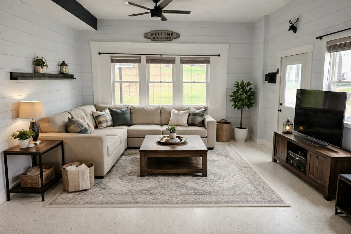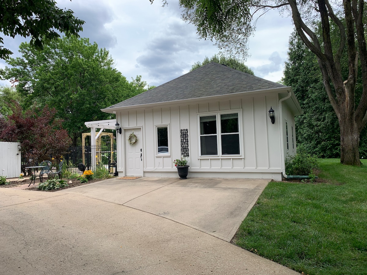 The Cottage, with a studio style layout, is a bright and clean space just one mile from historic downtown lees summit with local shops, bars and restaurants. The cottage is ~20 min from downtown Kansas City and 15 min from Kaufman and Arrowhead Stadium. This newly renovated 1900s milk barn is unique and special with a lot of charm, with a few of the modern conveniences. Guests are welcome to take advantage of the two acre landscaped yard and enjoy a delicious s’more at the outdoor fire pit!