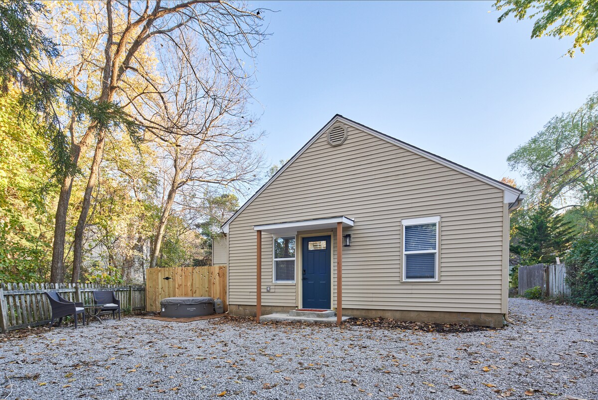 Take it easy at this unique and tranquil getaway. Enjoy your own private cottage with all the essentials for a comfortable stay. The cozy space is just under 200 sq ft and features a queen-size bed plus a loft mattress. Guests may enjoy exclusive access to the hot tub (lower level of main house) and a 1-acre pond stocked with catfish, and bluegill.