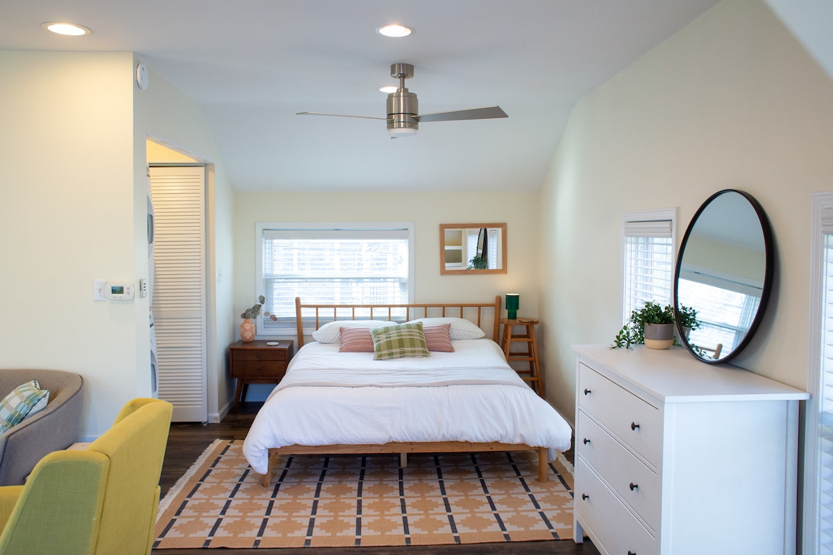 Enjoy your home away from home with style! This separate guest house has 1 bedroom & 1 bathroom that gives you privacy while still being centrally located in Prairie Village of Kansas City. Floor to ceiling shiplap walls, wood floors, black metal railing, & stylish decor you will feel like you're in an episode of Chip and Joanna Gaines' Fixer Upper! The home has its own private entrance, Washer/Dryer in unit and a fully functioning kitchen. High speed GooglFiber internet.