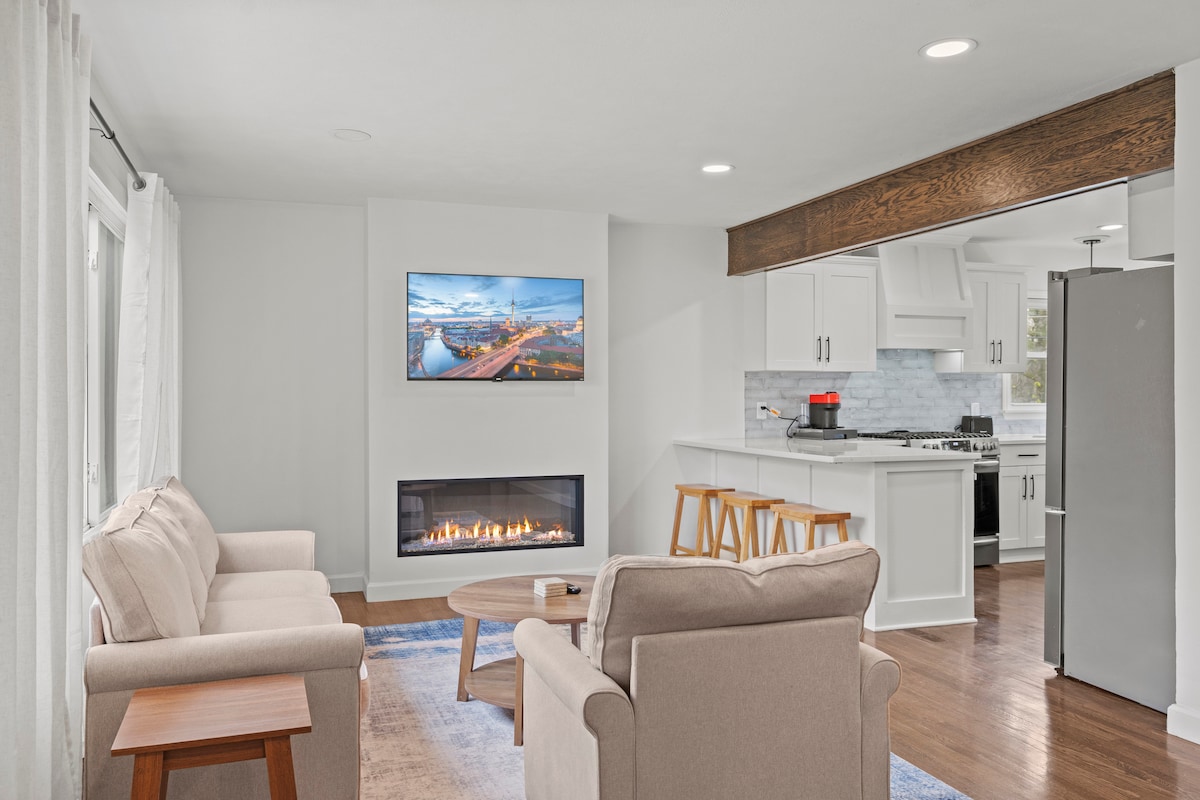 ⭐ Fully renovated 3BR home in Fairway, KS — minutes from KC attractions ⭐ Main-level primary suite with spa-style en-suite bath + clawfoot tub ⭐ Open-concept kitchen with quartz counters + full coffee bar ⭐ Cozy living room with gas fireplace + Smart TV ⭐ Upstairs game room with Xbox + lounge space ⭐ Private office, exercise area, and landscaped backyard ⭐Conveniently located less than 5 minutes from The Shops of Prairie Village and roughly 10 minutes from the Country Club Plaza!
