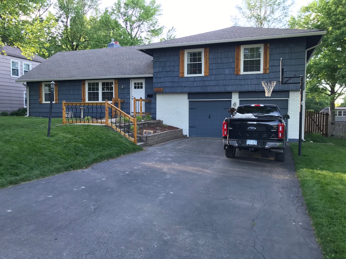 Closest, nice B&B to World Cup Kauffman/Royals, Arrowhead/Chiefs GEHA. And the new Pickle Ball SW19 at the Stadiums! Walking distance to the Stadiums. Perfect for Fans, Concerts, Travelers, Families,*Pets, Cross Country Travelers, 1/2 acre fenced. 1/2 mile from I-70, I-435, & 40 Hwy. Gated secure driveway. 3 Large Bedrooms, Chiefs & Royals, screened in porch. Fully furnished kitchen. The ambiance/comfort of going to Grandma's house with modern conveniences. *Pets with approval and rules.