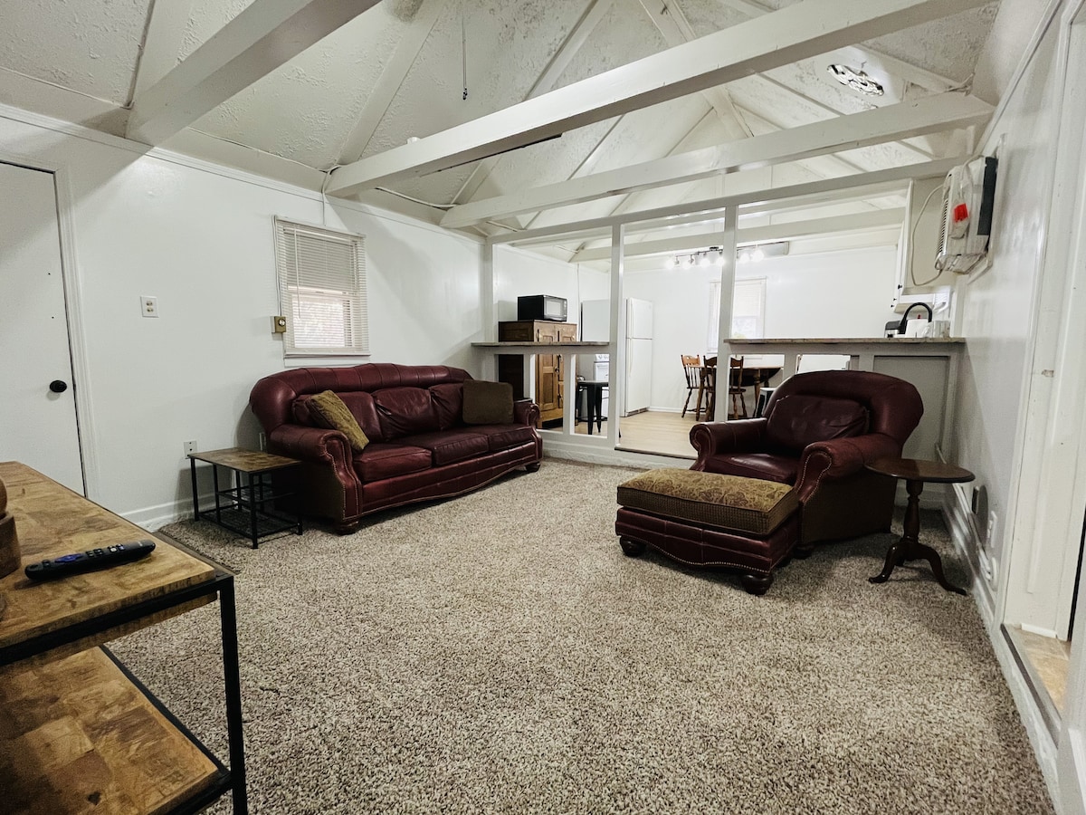 Soccer / football season 2026 is calling—rest, recharge, and enjoy KC from the perfect home base. Whether it’s a weekend escape or work trip, this cozy studio blends comfort and convenience. Nestled in a quiet neighborhood near KC’s top spots, you’ll enjoy peaceful surroundings with easy access to the city. Plus, it’s in the same neighborhood as the stunning Glasshouse at River Oaks wedding venue—perfect for event guests. Settle in, spread out, and enjoy a stay that truly feels like home.