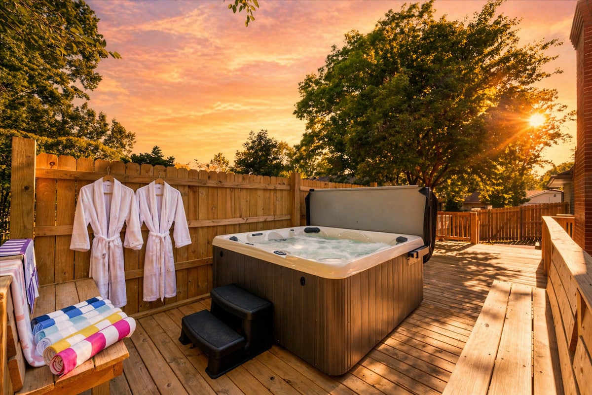 🌿 The Westport Oasis – top-rated KC retreat near Plaza & Westport 🌿 4 bedrooms + 3 full baths + 3rd-floor loft – sleeps 10 🌿 Spacious living room w/ Smart TV + high-speed WiFi 🌿 Fully stocked kitchen + dining area for 8 + enhanced coffee bar 🌿 Game room w/ foosball, Pac-Man, darts & bonus kitchenette 🌿 Outdoor sanctuary w/ fenced yard, dining space & 6-person hot tub 🌿 Two master suites (incl. jacuzzi tub & in-room laundry) + cozy guest rooms 🌿 Tommy Bahama bath products + fresh towels
