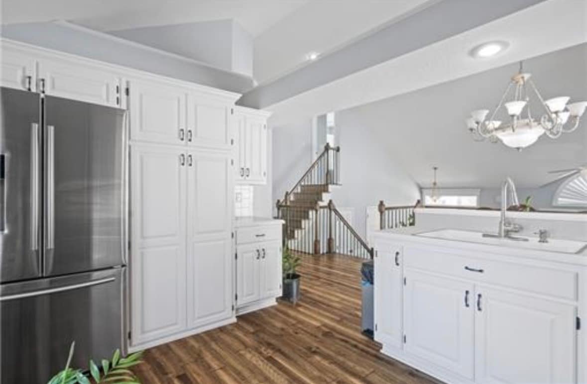 Lake community snuggled in the heart of Kansas City, central to activities, entertainment, dining, Chiefs & Royals sporting events, along with NASCAR, outdoor amphitheater’s, world renowned museums, Worlds of Fun and Oceans of Fun amusement parks, shopping and so much more. Spacious property with gourmet kitchen, king size bed in primary two queen size beds in adjoining bed rooms. Large spacious kitchen with breakfast bar and dine in area, large yard with outdoor area, walking paths and trails