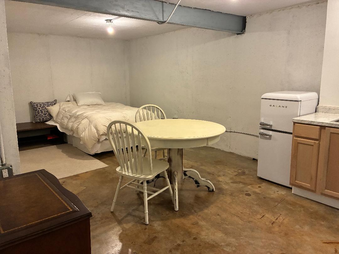 1 bedroom basement apartment with living room, kitchen, and full bathroom with washer/dryer combo. Guests enter into a common area via door at back of home (through gate on left side of driveway). Apartment is downstairs from common area (through door to the left immediately upon entry). Common area doubles as a night-time sleeping area for our dogs (kenneled). The dogs are often roaming the backyard. They’ll approach you & try to play, if you let them. All of the animals are very friendly.