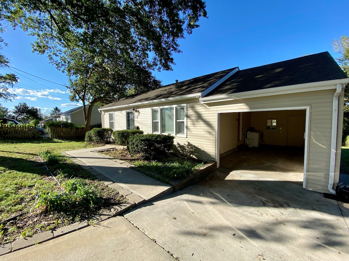 The perfect getaway that's close to it all! Enjoy your privacy at our restored 1933 bungalow on 18 acres just minutes off I-70. Relax after a road trip or gather your friends for a concert. Soak in the tub and get your best night of sleep on a plush mattress. Cook in a stocked kitchen or eat out at restaurants five minutes away. Meander along mowed paths, and let the kids play! We are pet-friendly, and business-ready with Gigabit Internet and an office setup.