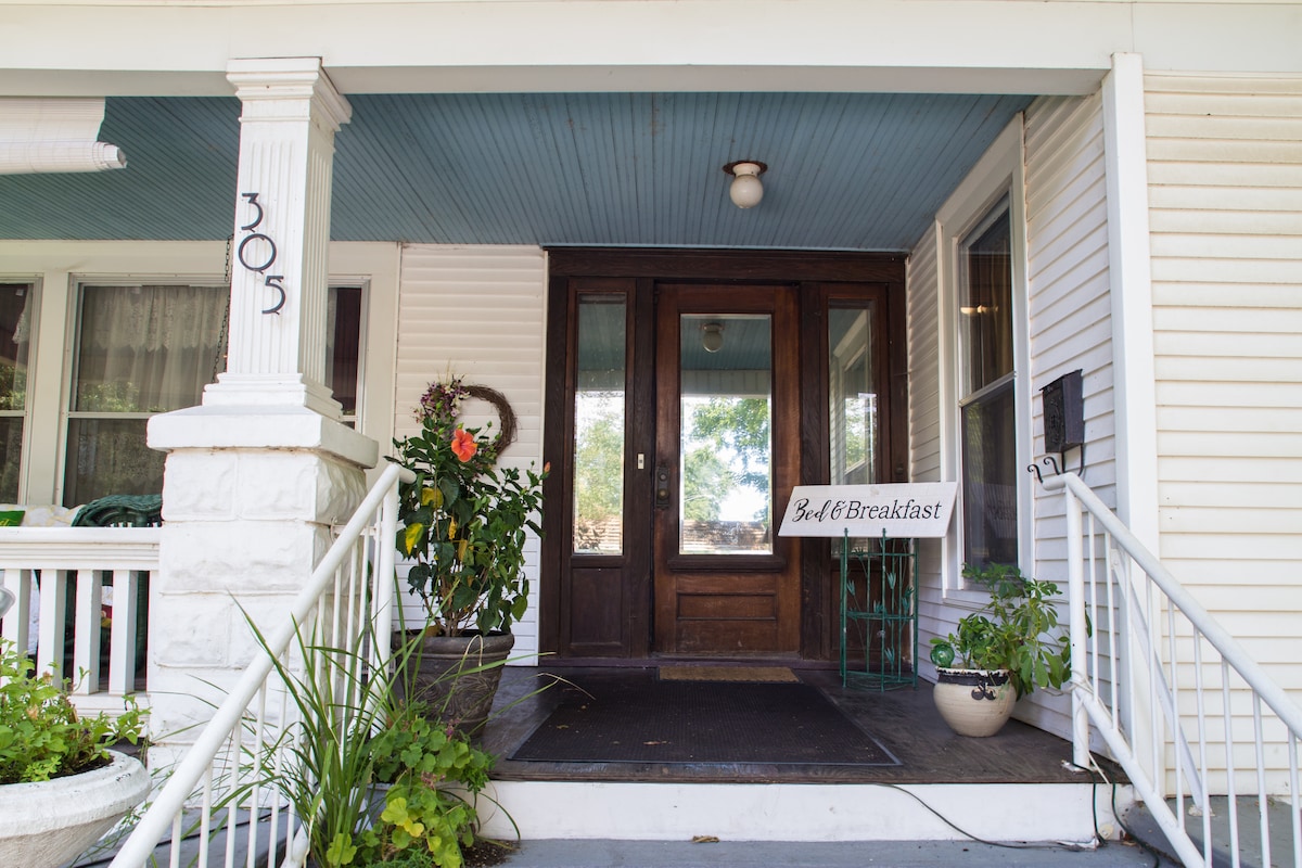 For returning guests, this is the 'Little Apple' bedroom on the main floor of the house! 1 bedroom in a charming & unique historic B&B near downtown! This is a private bedroom in a home with a shared kitchen, bathrooms, & other common areas. What you can expect: - super clean spaces - fluffy linens & towels - large backyard entertaining area - equipped kitchen for cooking - great location close to everything - unique Manhattan historical experience!