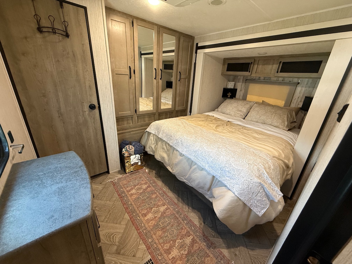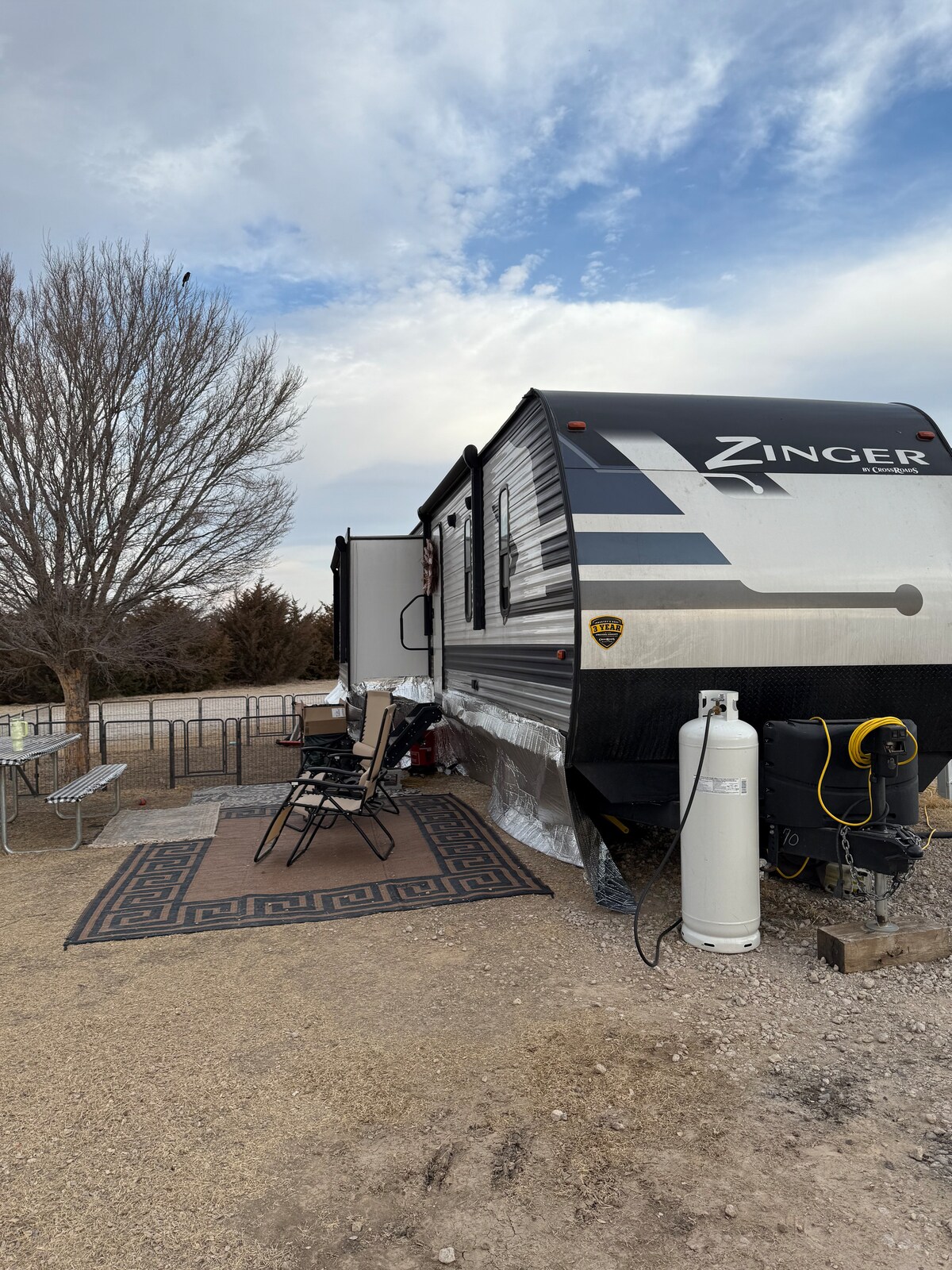 Need a place to stay temporarily, long term, or just a much needed get away? Look no further, our 2021 Zinger is perfect for you! Traveling with pets? We're pet friendly. One bedroom with a king sized, memory foam mattress & a couch that folds into a double if needed. Equipped with a cozy fire place making your staycation perfect. Enjoy the peacefulness Kansas has to offer with a beautiful sunrise & sunset accompanied by a starrynight sky. What could be more relaxing?