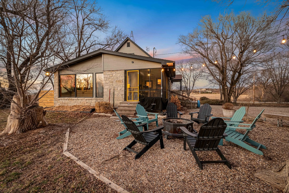 Clearview Cottage is a quiet country home just 13 miles from Eisenhower Airport and 20 minutes from downtown Wichita. This fully renovated home has one bedroom and one bathroom and is ideal for romantic getaways and business travelers. Outdoor spaces include a large front porch to watch the sunset and explore the stars at night. Located on a working farm, you will experience the sights and sounds of rural life and perhaps find some farm fresh eggs to enjoy!