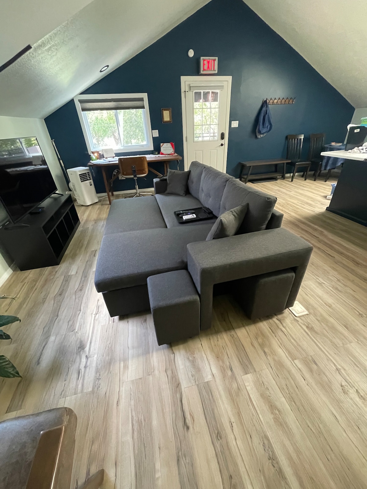 Take it easy at this fun and relaxing getaway. Enjoy country living and beautiful views in this one queen bedroom guesthouse/mancave with a fully equipped kitchenette, full bathroom, laundry area, gym, game area, and outdoor seating. This space also includes a folding twin bed and queen air matress if needed. Located just 10 minutes away from Milford Lake, the state's largest lake, 15 minutes away from Fort Riley, and 30 minutes away from Manhattan, home of the K-State Wildcats!