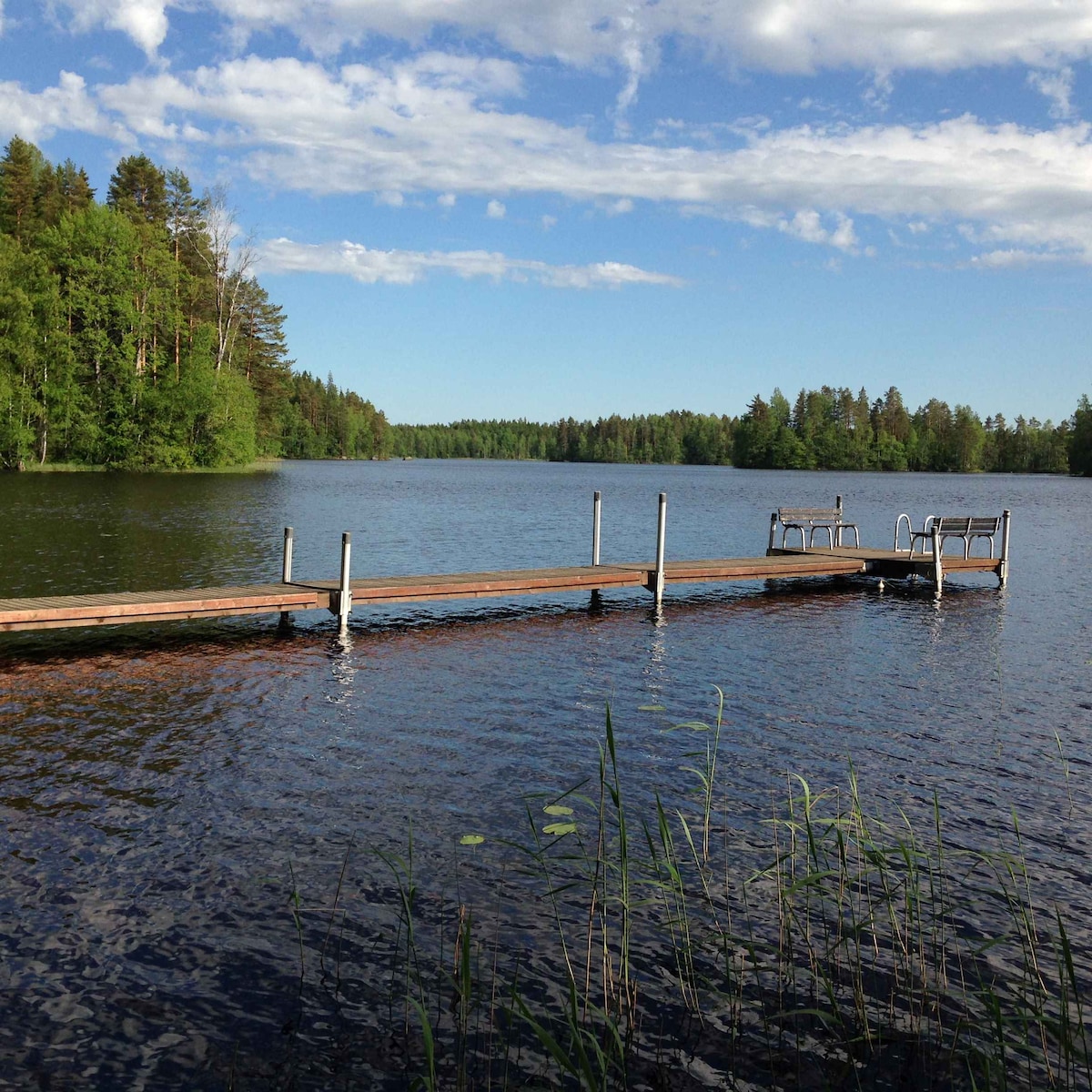 Cosy wooden cottage and sauna on the own beach in the middle of forest on the beautiful Hakolampi lake. The lake is deep and very good swimming place for person who can swim. It is calm and not windy and the water is soft and clean. One canoe is in use. Torronsuo and Liesjärvi Natural Parks are near and Forssa shops only 15 km away. See Finnish nature and pick berries and swamps just going out of the cabin. Good ways by car to the cabin. Wooden and gas grills. Indoor toilet, running water.