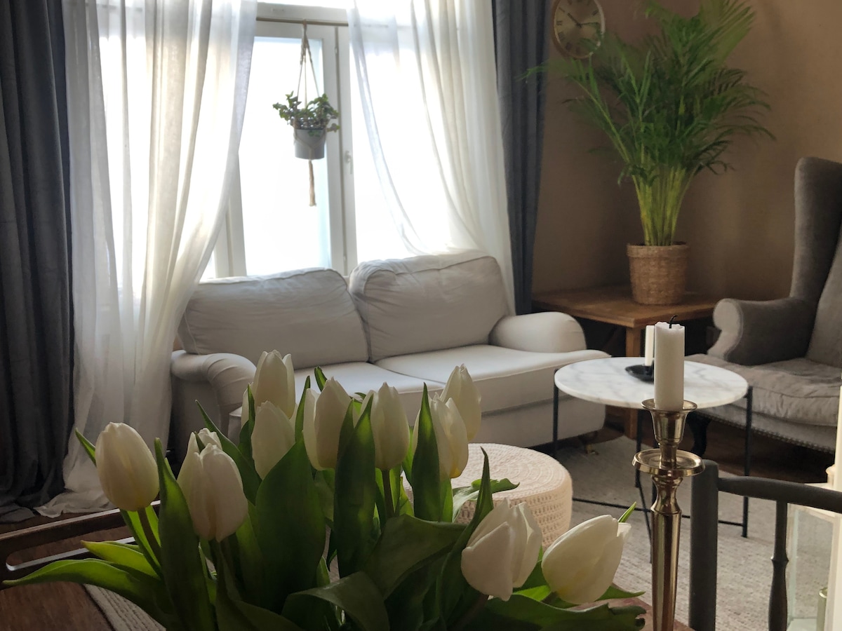 Nauti elämän helppoudesta tässä rauhallisessa, keskeisellä paikalla sijaitsevassa kohteessa. Asunto on kauppakeskusten vieressä, mukavan lähellä kaikkia palveluja. Sinne on helppo tulla ja sieltä on helppo lähteä, bussilla, junalla ja autolla. Oma pysäköintipaikka oven vieressä. Asunto on hissitalon ylimmässä kerroksessa, rauhallisella sisäpihan puolella ja siinä on tilava parveke. Wifin lisäksi tarjolla on Chromecast ja iso 4K-tv. Parivuoteen voi jakaa kahdeksi sängyksi ja vuodesohva on 140.