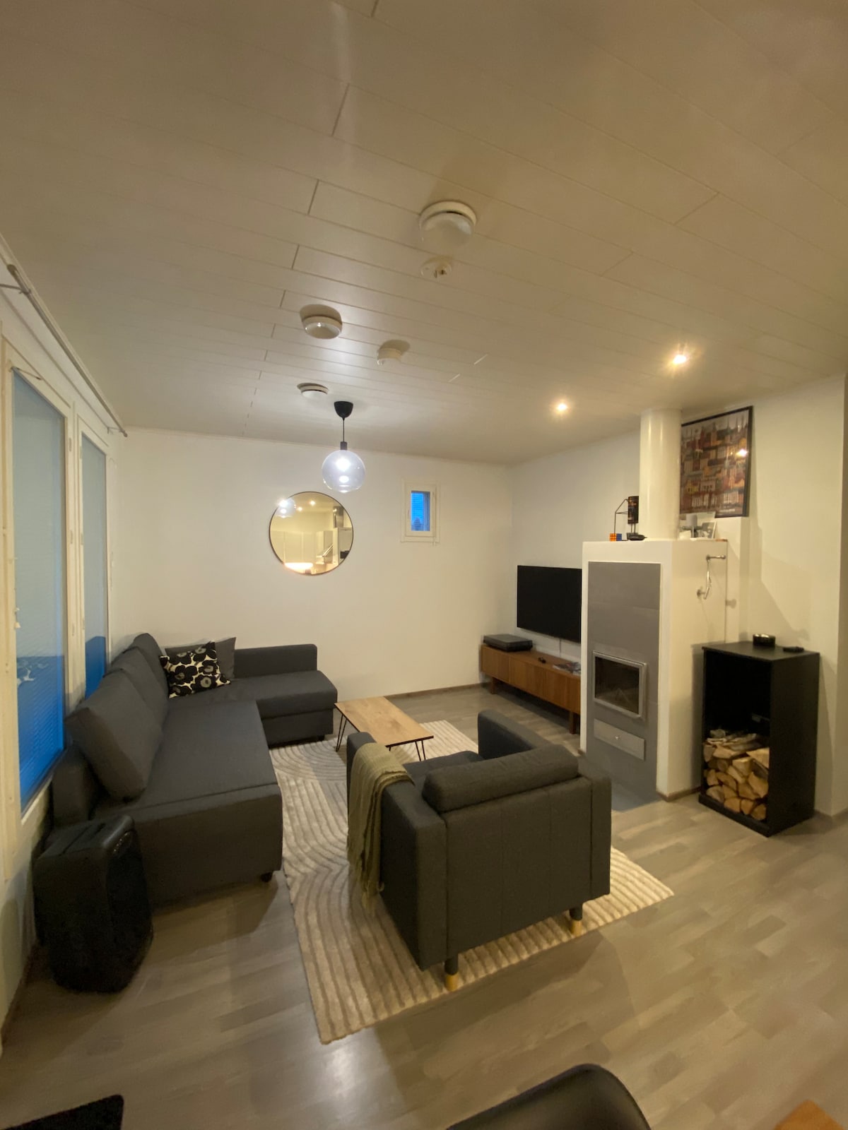 Petsamo Apartment is fully equipped, light and spacious upper floor apartment in a private wooden house. Two bedrooms and a big open space for kitchen and living room with two sofa bed. About 80 square meters, accommodates max 7 persons. Own entrance, free parking and free use of the patio with grill. Situated in green and quiet environment, 700 meters to the centre and 1500 meters to the railway station. Good train connections: 50 minutes to Helsinki and one hour to the Helsinki airport.