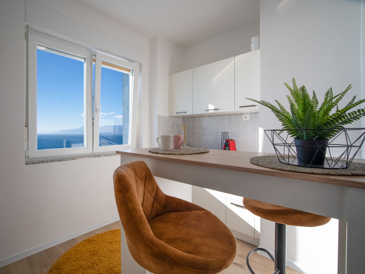 Boravak u lijepom apartmanu pruža vam jedinstven odmor zbog svoje lokacije jer je smješten prvi red do mora i omogućuje vam kupanje i uživanje direktno iz apartmana. U neposrednoj blizini nalaze se restoran i kaffe bar gdje se možete osvježiti. Lokacija je idealna jer ste za 8 km u predivnoj Opatiji, od centra grada Rijeke apartman je udaljen 5,6 km, od Trsata 9 km, a od predivnog otoka Krka 34 km. Također možete posjetiti i kuću Halubajskog zvončara na Viškovu,koja je udaljena svega 10 km.