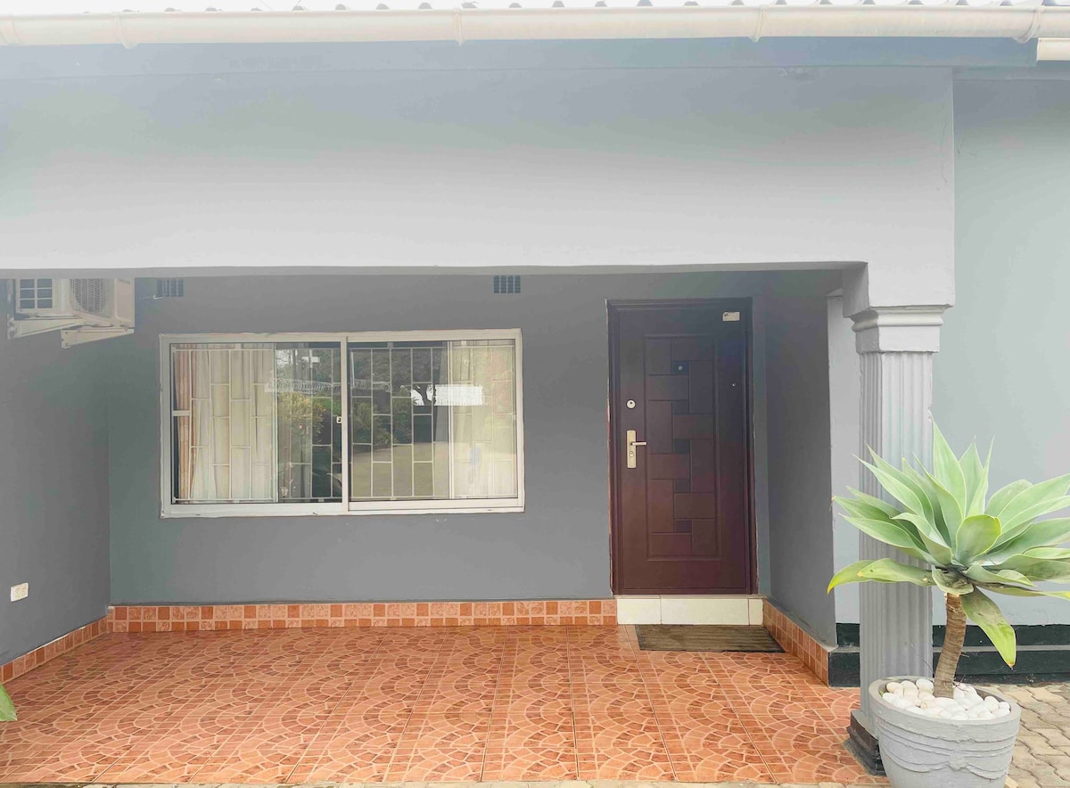 Peaceful and centrally-located two bedroomed guest house, with back up solar power . It is the perfect resting place while you work in Lusaka. We are 5 minutes away from Central and Pinnacle Novare Shopping Mall which feature several restaurants, coffee shops and grocery stores. We are 5 minutes from the US Embassy and 23km from the airport. Zambia is experiencing power cuts. We have a backup system that lasts up to 4 hours after sundown and is supported by solar energy during the day.
